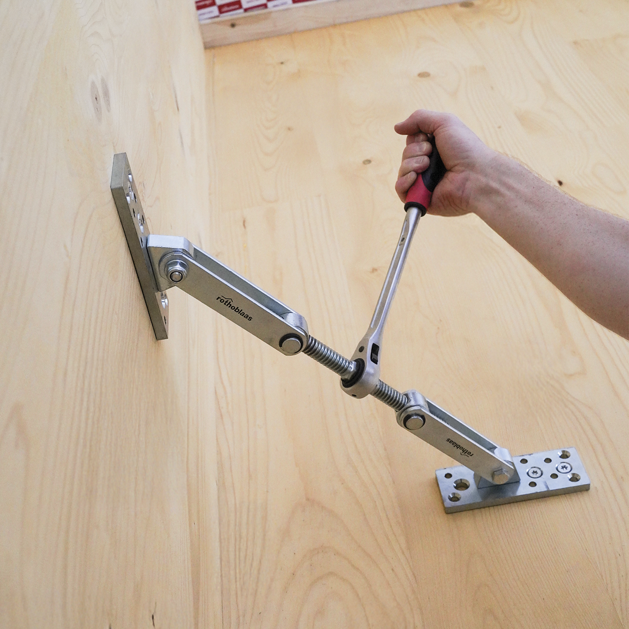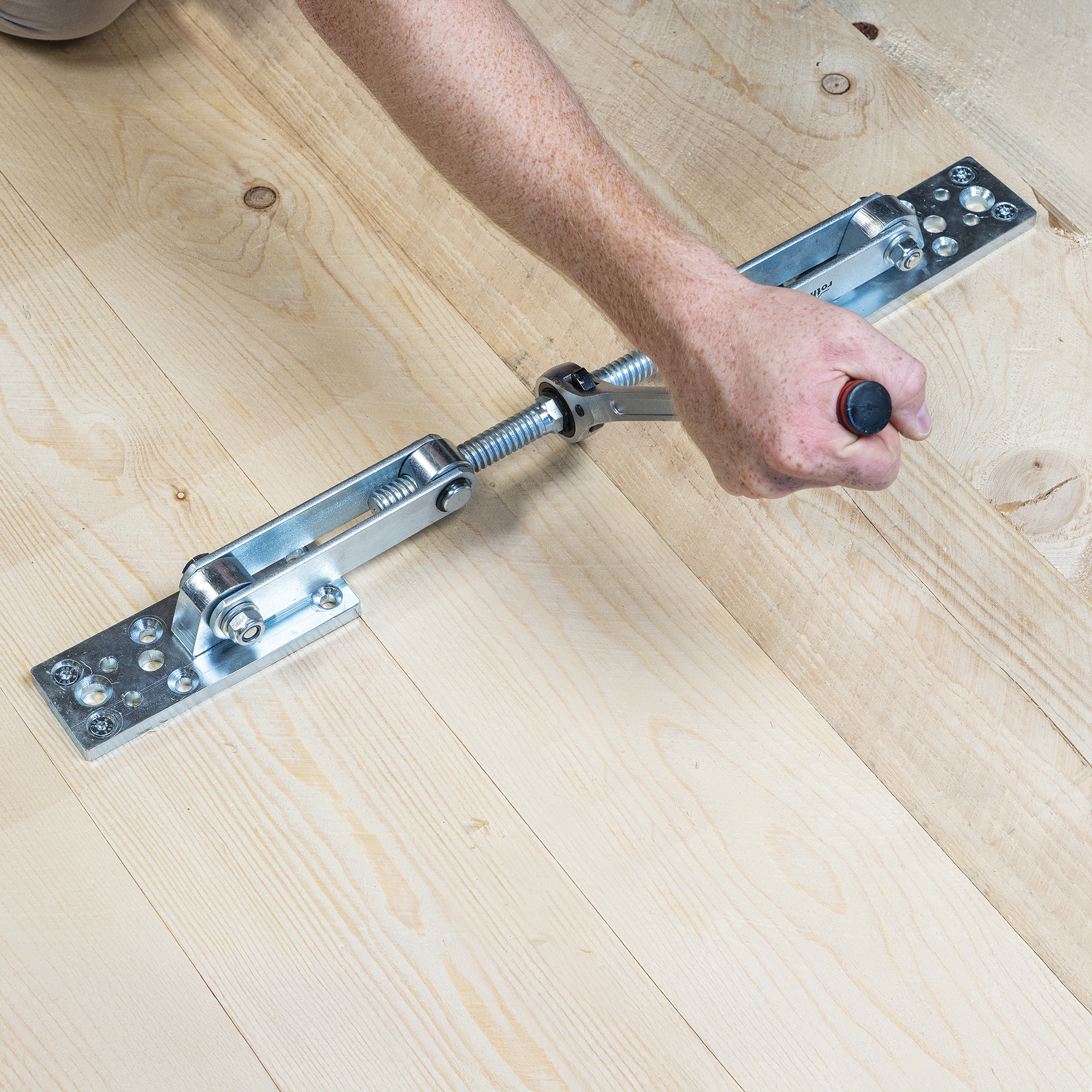 GEKO to ściągacz do płyt do precyzyjnego montażu ścian z drewna litego, stropów z desek układanych, elementów klejonych i wielu innych.