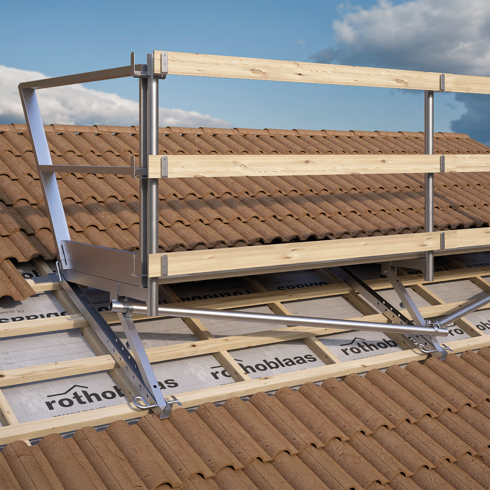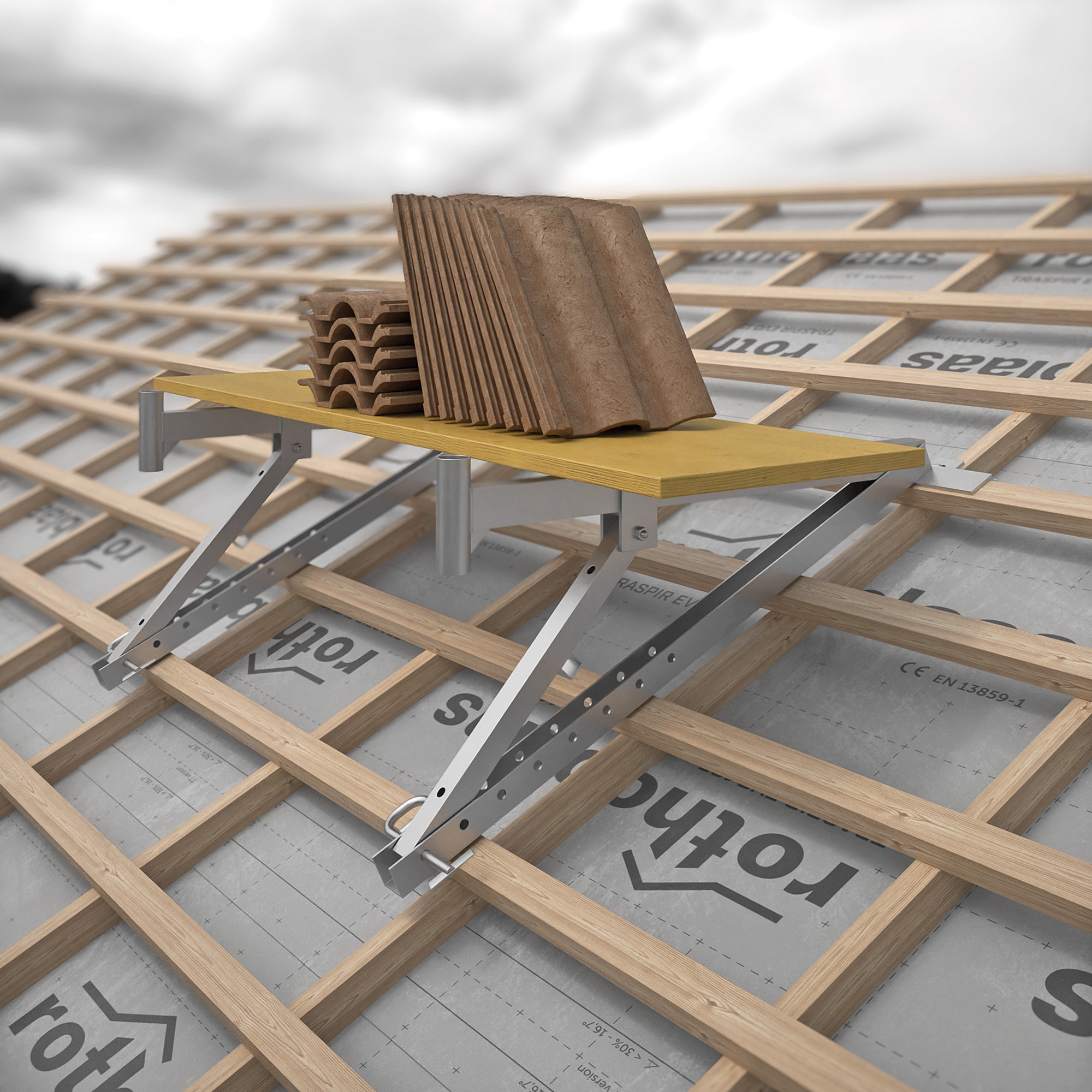 Idealna jako podpora do tymczasowego składowania paneli, desek, listew, dachówek, izolacji, membran, maszyn stacjonarnych itp. Może być również wykorzystana jako tymczasowy podest spoczynkowy dla operatora.