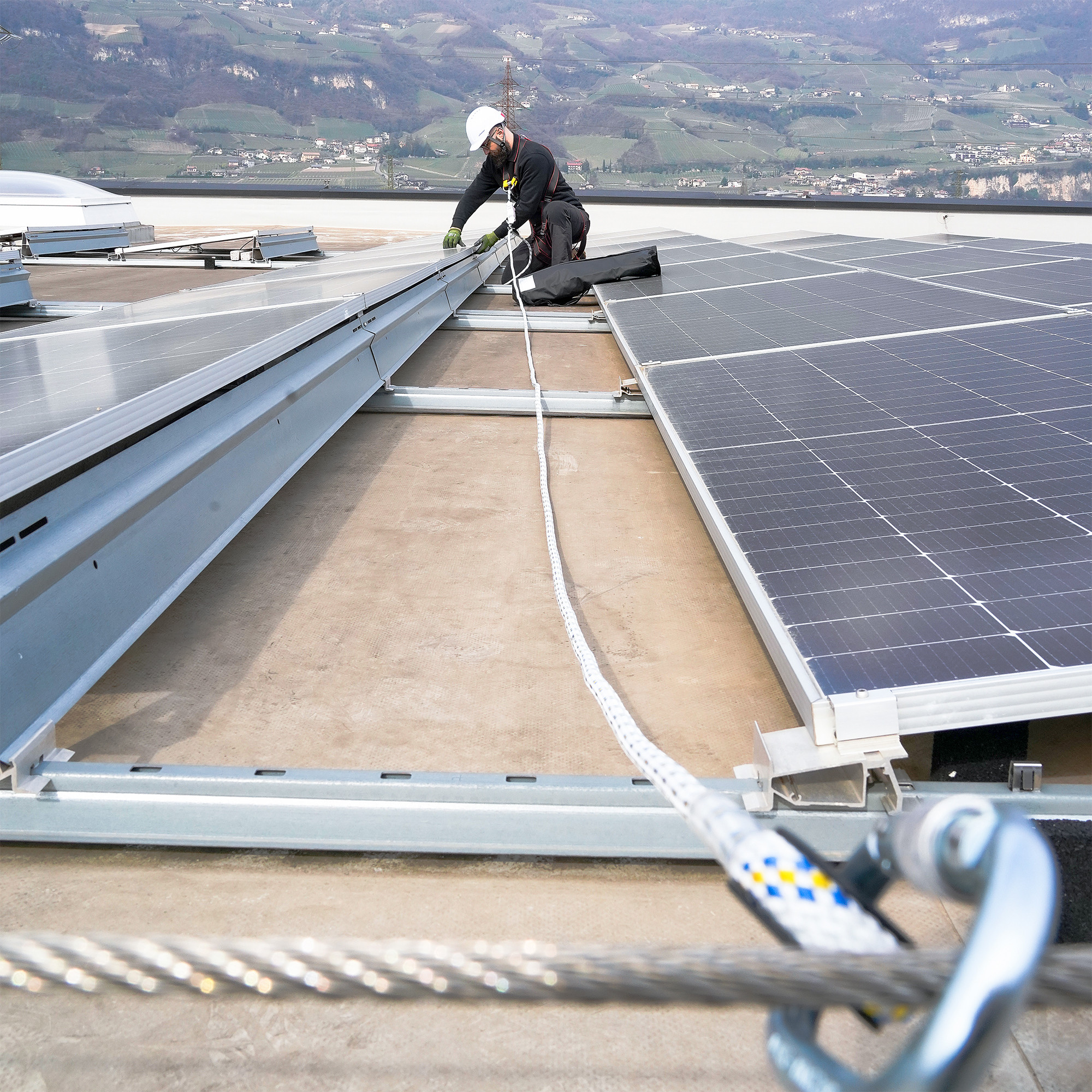 ROOF BASE to zestaw chroniący przed upadkiem z wysokości, odpowiedni dla wszystkich standardowych urządzeń do prac na pokryciach dachowych. W jego skład wchodzą: szelki chroniące przed upadkiem z wysokości IRIS, LINOSTOP, lina o długości 10 metrów z regulowanym urządzeniem przesuwnym oraz łącznik „D” FAST LINK.