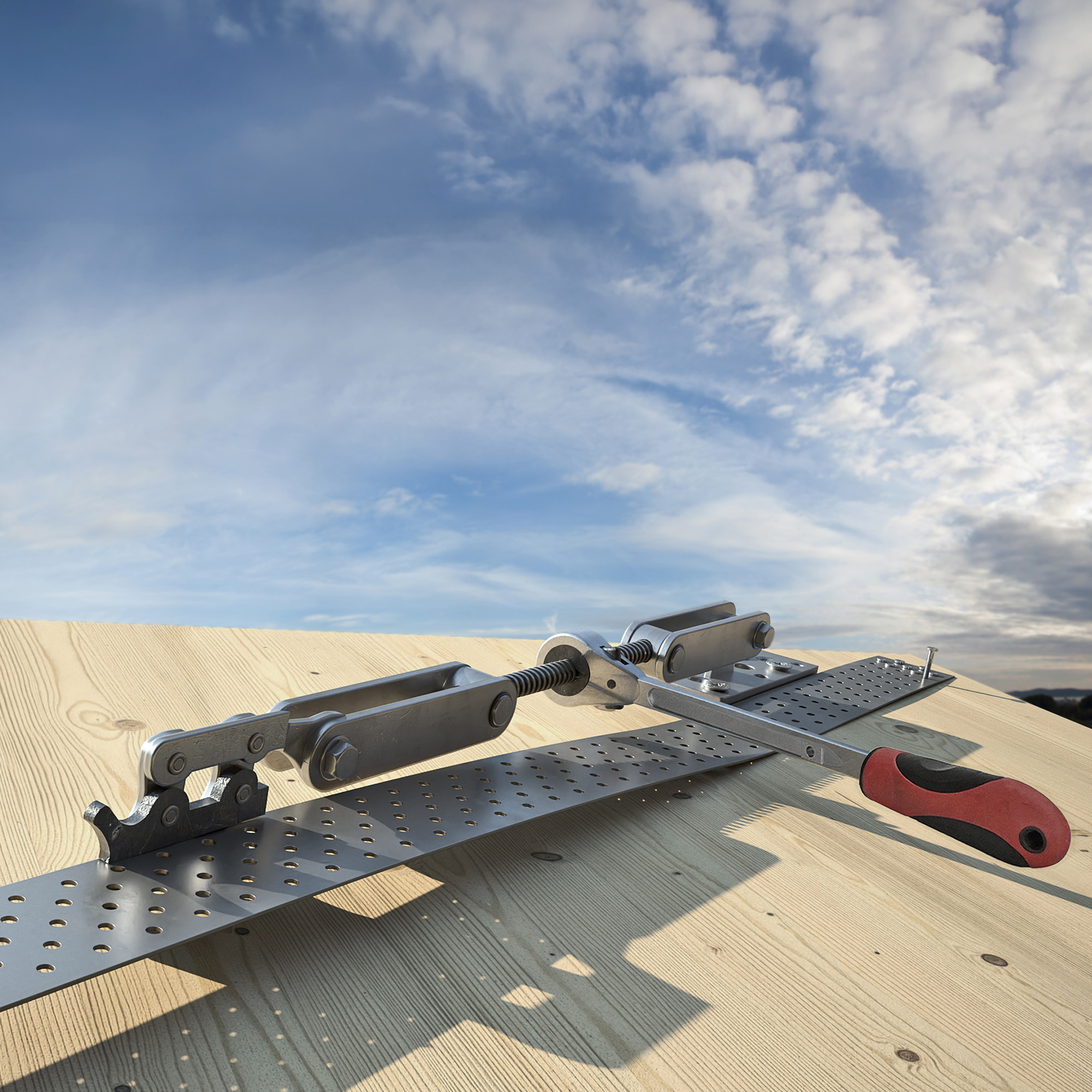 System prosty i efektywny, aby realizować płaskie usztywnienia przeciwwiatrowe; dostępny w dwóch grubościach 1,2 mm i 3,0 mm.