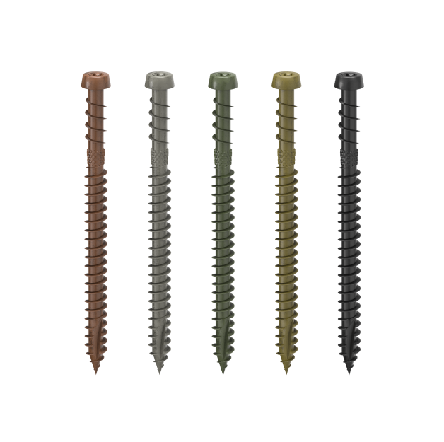 Możliwość mocowania również w aluminium, za pomocą wkręta KKA COLOR. Dostępne w wersji aluminiowej z barwioną powłoką organiczną lub w wersji ze stali węglowej z ocynkowaniem galwanicznym. Nadają się do mocowania desek drewnianych lub z WPC do konstrukcji no śnych drewnianych, z WPC lub aluminiowych.