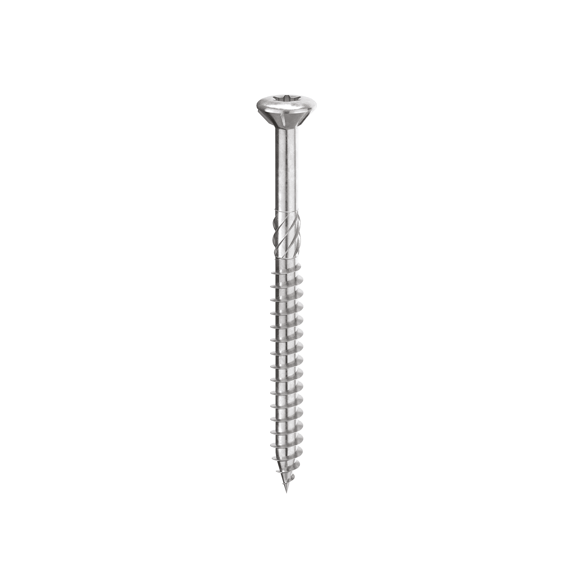 Łeb stożkowy o kulistej geometrii i zakrzywieniu na powierzchni dla wysokiej estetyki i solidnego chwytu za pomocą wkładu. Trzon o powiększonej średnicy i wysokiej wytrzymałości na skręcanie, aby zapewnić solidne i bezpieczne połączenia również w przypadku drewna wysokiej gęstości.