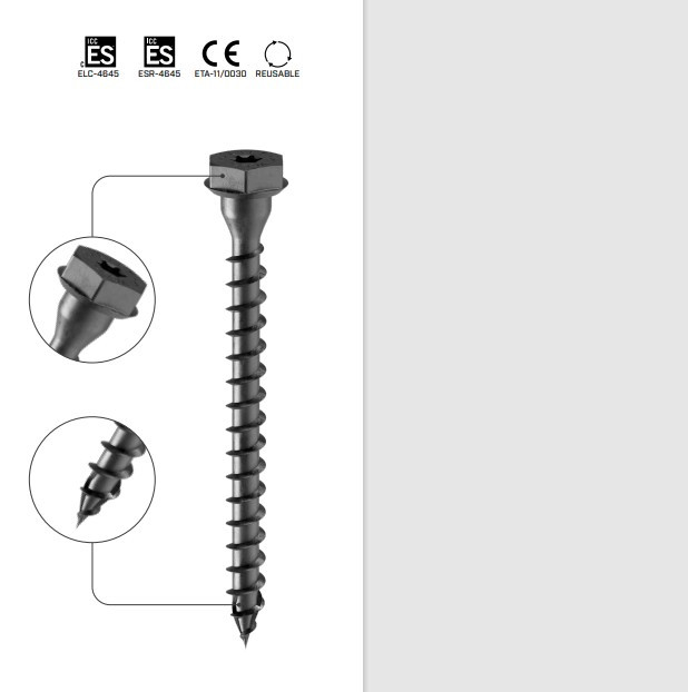 The screw is also certified for permanent metal-to-timber structural connections in buildings. The head is designed for pairing with plates.
